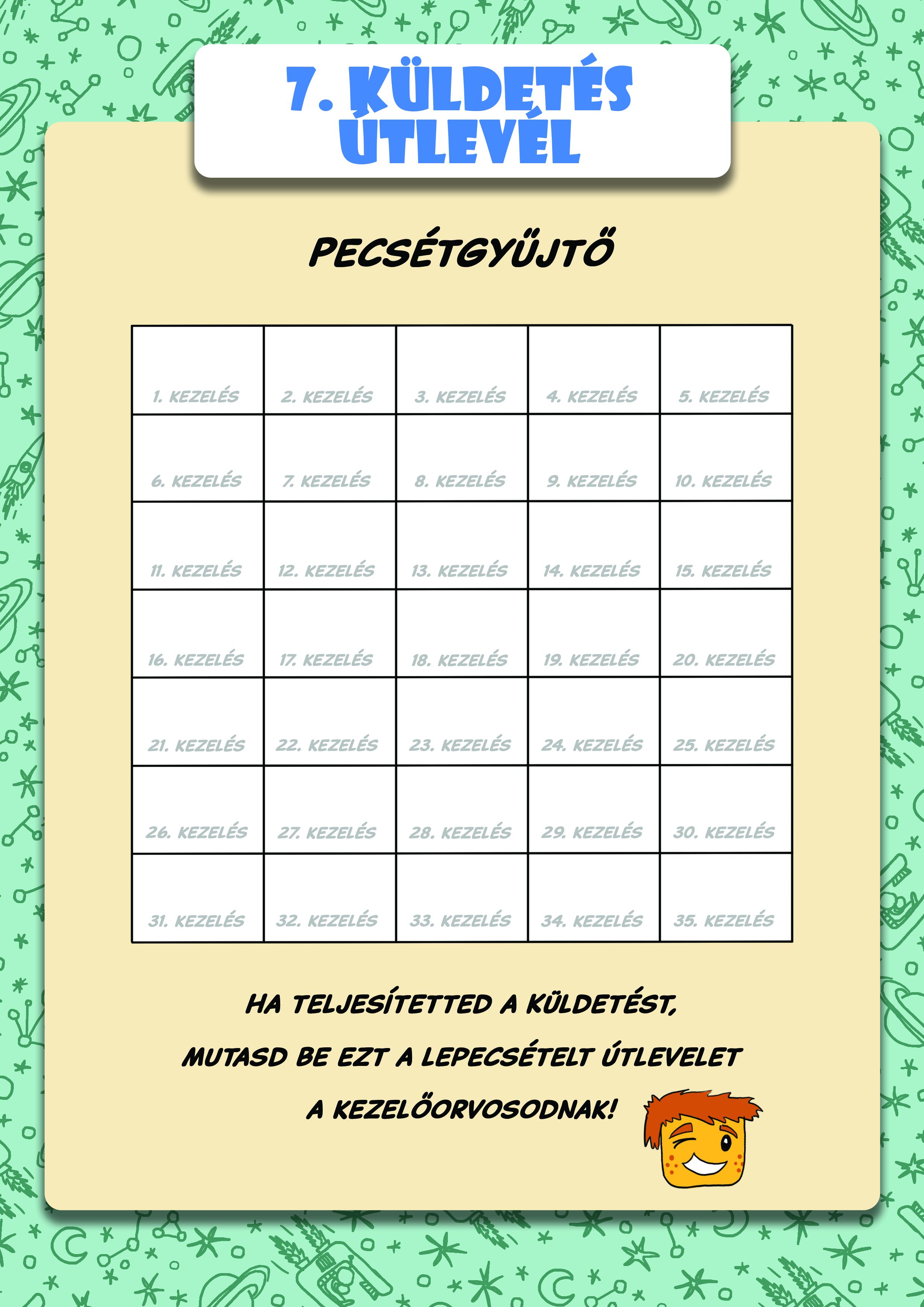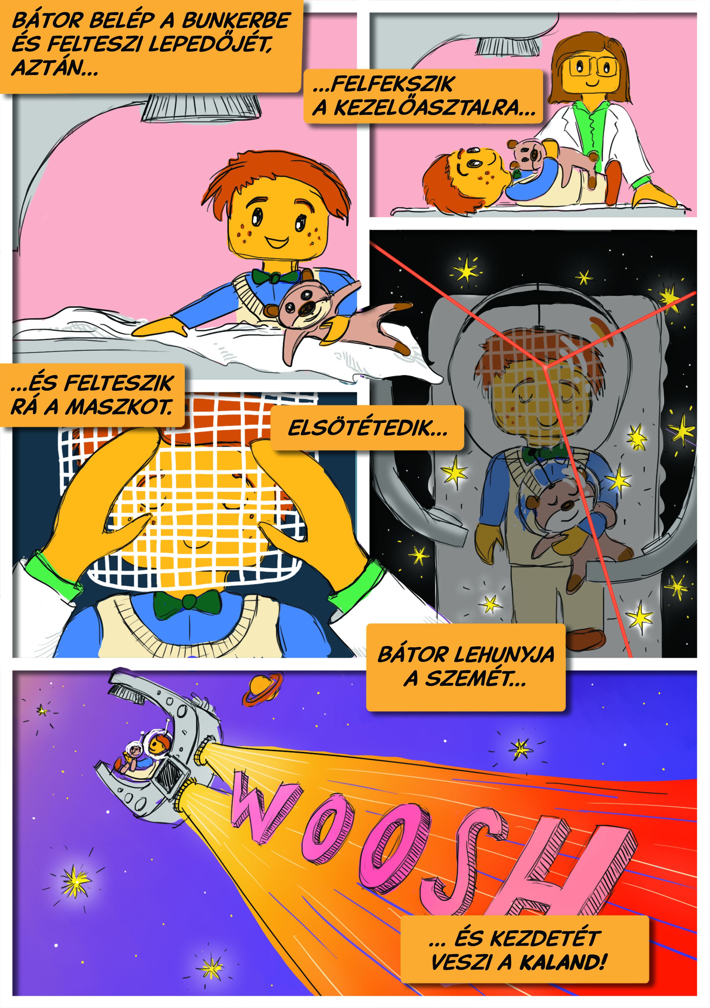 Ebbe a dobozba fejlesztettük ki Bátor küldetésfüzetét, amely egy képregénnyel kezdődik. Bátor a sugárkezelés közben azt álmodja, hogy hős űrhajósként elpusztítja a bolygót megtámadó rosszindulatú sejteket. Utána sugárterápiás témájú feladatokkal folytatódik. A „küldetések” feléhez nem is kell tudni olvasni, hogy teljesíthessék (pl. foton-labirintus, bunkerszínező), de található benne sugaras keresztrejtvény és egy tudáspróba is – természetesen oktató jellegű kérdésekkel. A legvégén található pecsétgyűjtő „kitöltésével” pedig egy Bátor formájú egyedi aranyéremhez jutnak, amely tanúsítja, hogy sikeresen teljesítették a “Küldetést”.